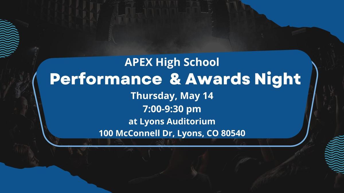 APEX High School Awards & Performance Night May 14, 7:00-9:30 PMAt Lyons Auditorium, 100 McConnell Drive, Lyons, CO 80540